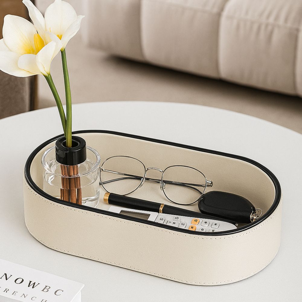 Ordnen Sie sich stilvoll mit dem Kapsel Leder Organizer Tray. Vom Moment an, in dem Sie nach einem langen Tag Ihre Schlüssel hineinlegen, wird dieses Stück Teil des Rhythmus Ihres Zuhauses. Mit seiner weichen Lederoberfläche und den praktischen Fächern verwandelt es einfache Aufbewahrung in eine warme, einladende Routine.